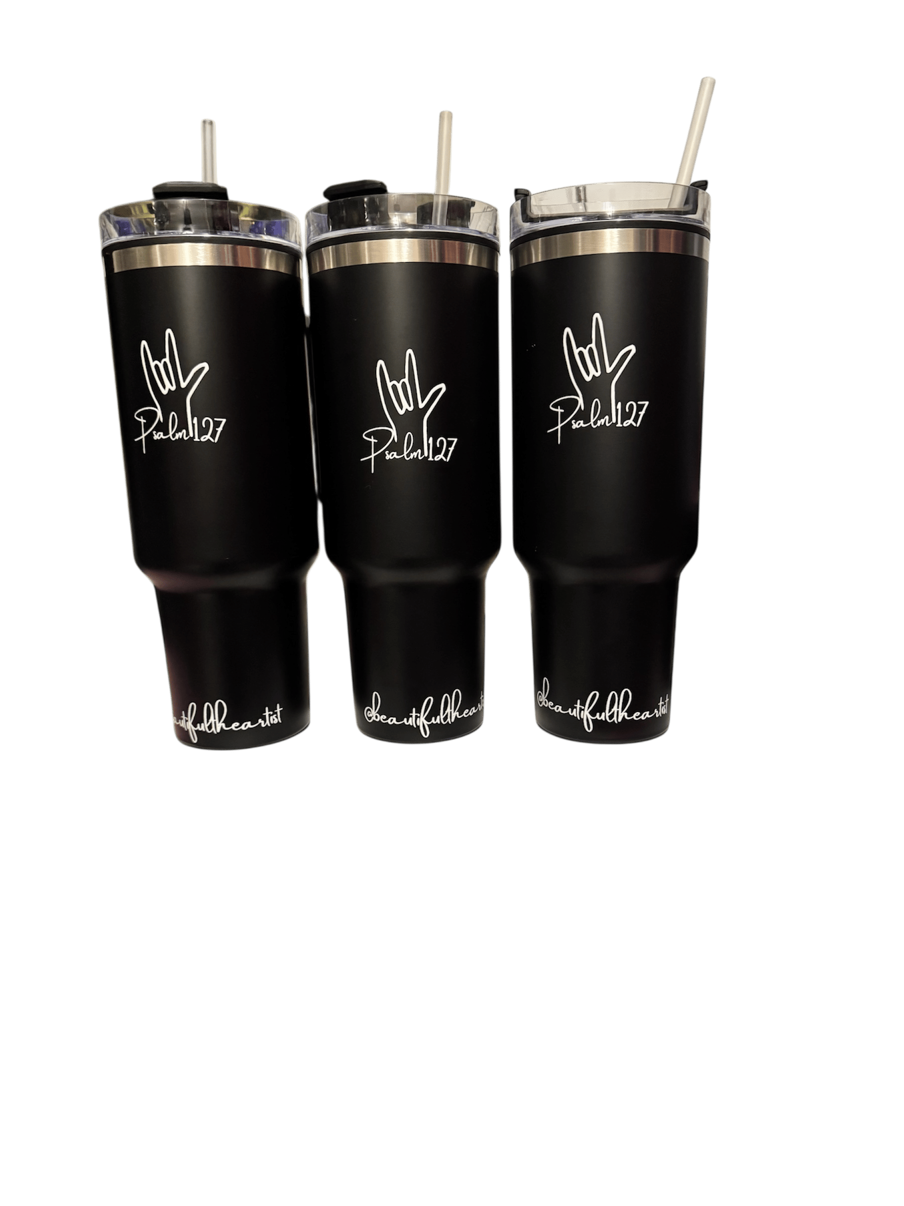 "ILY Psalm 127" Stainless Tumbler Mug with Straw